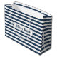 This “Custom Name Blue/White Stripes Large Gift Bag” features blue and white stripes and can be personalised with the name of the recipient. Make your gifts even more memorable with this stylish and customisable gift bag. order today!