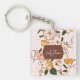 Custom Name Bohemian Peach Floral Script Name Key Ring
