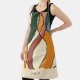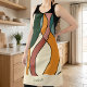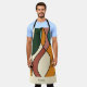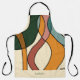 This personalized Mid-Century Modern abstract apron brings warm, lived-in energy into your kitchen — a sculptural composition of interwoven curves in terracotta, mustard, sage green, forest green, and warm beige, covering the full apron in rhythmic, layered movement.