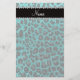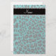 Custom name bright aqua glitter leopard print stationery