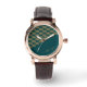 Custom name brown floral on pine green watch