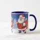 Custom name Christmas coffee mug, Jolly Santas. combo blue.