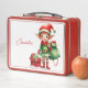 Custom Name Christmas elf with a sack of gifts Metal Lunch Box