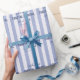 Custom Name Coastal Cowgirl Blue White Stripes Wrapping Paper