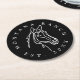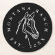 Custom name coasters for horse ranch farm. Black and white design with established date. Elegant decorations for new family home, business, wedding party, bbq, farm, horse racing etc. Add your own personalised text and date. Disposable accessories and party supplies with customisable background colour. Change quantity to get the cheap bulk price. Classy typography template with artistic horse drawing.