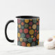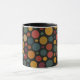 This custom name mug features dull colorful circles on a black background for a modern boho gift. Personalize with any name and pair it with the matching tote and pillow for a beautiful coordinated gift set.