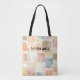 Elevate your style with this vibrant tote bag featuring a colourful abstract pattern of rectangular shapes in pastel colours. The design includes shades of pink, orange, yellow, green, and blue, creating a lively and eye-catching look. The centre of the bag can be personalised with your chosen name in stylish black text, making it a unique and personal accessory. Perfect for carrying groceries, books, or everyday essentials, this tote bag is both practical and fashionable. The sturdy black handles provide comfort and durability, making it an ideal accessory for any occasion.