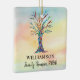 This Family Reunion Ornament is decorated with a mosaic family tree in the colours of the rainbow on a watercolor background.