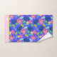 Custom name colourful floral blue modern cute towel. Feminine pretty towel blue, yellow, pink, green, with cactus, succulents, leaves, plants pineapplesGift idea for christmas, summer holidays, beach time, birthdays, mother's day for women, girls, wifes, mothers, friends. Add name or your own text.