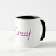 A 15oz black rimmed personalised coffee mug