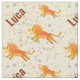 Cute cartoon lion print with a light dotted background personalised fabric for kids. Make a special gift, piece of clothing or a decorative item for a child, boy or girl, who loves wild animals, especially lions. Customise it by replacing the sample name with the one you want to see on the fabric. Light background with earthy gentle orange, yellow and brown tones.
