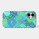 Design features a cute, whimsical rolling circles pattern in shades of blue and green. Personalise with name or custom text in white on a matching blue shape with simple to use template.