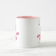 Cute personalised Christmas mug with cheerful gnome in pink apparel.