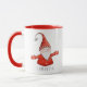 Cute personalised Christmas mug with cheerful gnome in red.