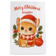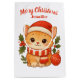 This bag features a charming watercolor-style illustration of a sweet ginger tabby kitten wearing a festive Santa hat and a striped scarf, nestled among holly and a red ornament. The top is scripted with 'Merry Christmas' and, most importantly, includes space for the recipient's name (like 'Jennifer' shown here).