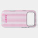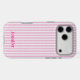 Add a pop of personality to your phone with this pink striped custom name phone case! Featuring a soft watercolor stripe pattern in blush pink and white, this stylish design includes personalized text at the bottom – perfect for your name, initials, or a short message.