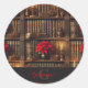 Custom Name Dark Academia Poinsettia Bookshelf Classic Round Sticker