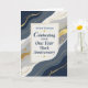 This elegant employee work anniversary design celebrates one years of service with a personalized name featured on the front. Flowing navy and gray shapes, refined gold accents, and a clean cream center panel create a polished presentation suitable for professional recognition. Designed to honor commitment, dedication, and continued contributions, it is a meaningful way to recognize an employee reaching their one-year work anniversary.
