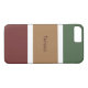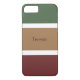 Modern and stylish cell phone case with a fall colour scheme pattern. Large green, tan and maroon stripes with small white stripes. Your name printed in a maroon text.
