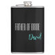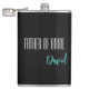 Flask for the father of bride is shown in black with teal and white text and has a sample name.
