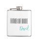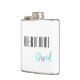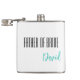 Flask for the father of bride is shown in white with black and teal text and has a sample name.