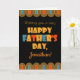 A stylish Father's Day greeting card to customize with a name, in an Art Deco style. The front cover greeting is, 'Wishing you a very HAPPY FATHER'S DAY, (space for you to add the name of the recipient!' in bright red, blue and golden yellow on a black background. There are curved Art Deco patterns at the top and bottom and the inside message is just a suggestion which you can easily change or delete altogether if you wish.