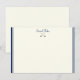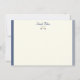 Custom name flat note card shown in ivory with a slim navy blue double border trim also with a golf inspired winners wreath print.