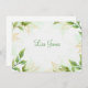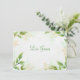 This custom name flat note card is shown in a lovely watercolor floral leaves print. Text colour Green Envelopes included