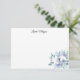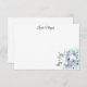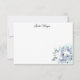 Note Card is shown in white with a lovely floral print of flowers in colours of blue and white. Shown with a custom sample name.