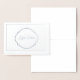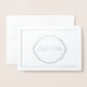 Custom name Note Card is shown in white with a sample name and border trim and accent print in real silver foil.