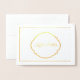 Custom name Note Card is shown in white with a sample name and border trim and accent print in real gold foil.