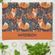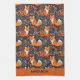 Custom Name Foxes and Leafs Pattern Tea Towel