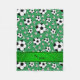 Modern and trendy Custom name sports random black and white soccer balls pattern green background and with green stripe personalised with just add your name gifts or monogram gifts or your initials for a unique gift. Sports gift ideas for men and boys and girls. Ideal for birthdays.