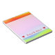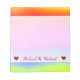 This notepad design features a fun, rainbow-like multicolored gradient pattern featuring various shades of colours like yellow, orange, red, pink, purple, blue and green. It also features a customisable name near the bottom, between heart shapes. [~Z0000006]