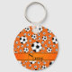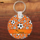 Modern and trendy Custom name sports random black and white soccer balls pattern orange background and with orange stripe personalised with just add your name gifts or monogram gifts or your initials for a unique gift. Sports gift ideas for men and boys and girls. Ideal for birthdays.