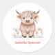Custom Name Girl Cute Modern Highland Cow Classic Round Sticker