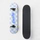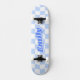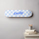 Custom Name Girly Blue White Chequered Pattern Skateboard