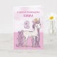 A sweet pink pony just like your goddaughter is prancing with the number two! Gold looking details are woven in her mane and tail. Perfect card to wish your goddaughter her 2nd birthday! Personalise this card with your goddaughter’s name.