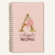 Custom Name Gold Blush Pink Roses Letter A Recipe Notebook