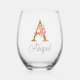 Custom Name Gold Foil Blush Pink Roses Letter A Stemless Wine Glass