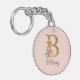 Custom Name Gold Foil Blush Pink Roses Letter B Key Ring