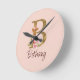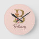 Custom Name Gold Foil Blush Pink Roses Letter B Round Clock