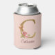 Custom Name Gold Foil Blush Pink Roses Letter C Can Cooler