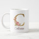 Custom Name Gold Foil Blush Pink Roses Letter C Large Coffee Mug