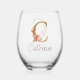Custom Name Gold Foil Blush Pink Roses Letter C Stemless Wine Glass