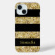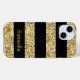 Custom Name Gold Glitter Black Stripes Case-Mate iPhone Case