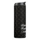 This thermal tumbler features the text "Grades, gown, Graduation" with a background of graduation caps. you can customised and put the graduates' name.