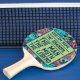 Overall, it's a nice product but for what you pay the quality isn't very good. The way it's glued together, as you can see in the pictures, is messy, the glue is visible and shiny, there's some ink staining that looks like black fluff but isn't, it won't come off. On the paddle's black surface there are also little white marks here and there. It's not too easy to show in the pictures because of the flash but I tried to showcase the little white blemishes that ruin a smooth black surface. This was meant to be a gift and it just looks sloppily put together unfortunately. A few imperfections that mar what could have been really great. The printing was neat.