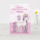 This pretty card will bring an ooh and ahh to your great granddaughter on her 3rd birthday as she sees this pink and white pony wearing a crown with a touch of golden looking sparkle on her mane, tail and crown. Sweet card to wish your great granddaughter happy 3rd birthday! Personalize this card with your great granddaughter’s name.