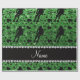 Modern, girly, chic and trendy Custom name green glitter (NOT REAL GLITTER) roller derby girl silhouettes, roller skates, stars, hearts and bows ribbons pattern background and with pretty black diamonds (faux not real diamonds) with sparkly hearts and dots stripe personalised with just add your name gifts or monogram gifts or your initials for a unique gift. Roller derby gift ideas for women and girls. Ideal for roller skating girls / women.